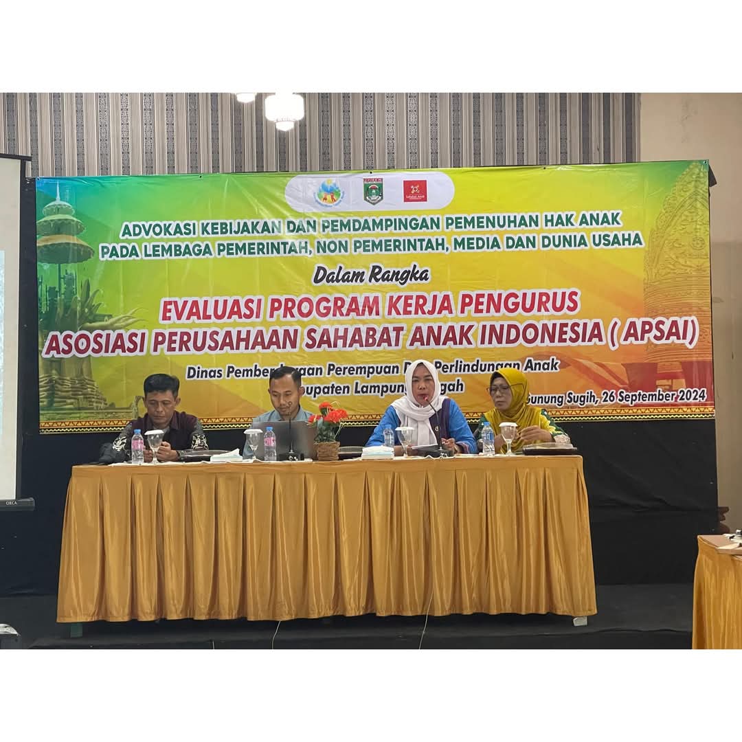 Dinas Pemberdayaan Perempuan dan Perlindungan Anak Kabupaten Lampung Tengah Melakukan Kegiatan Advokasi Kebijakkan dan Pendampingan Pemenuhan Hak Anak Pada lembaga Pemerintah, Nonpemerintah ,Media, dan Dunia Usaha dalam rangka Evaluasi Program Kerja Asosiasi Perusahaan Sahabat Anak(APSAI) di Aula Rumah Makan Prambanan,Yukum Jaya