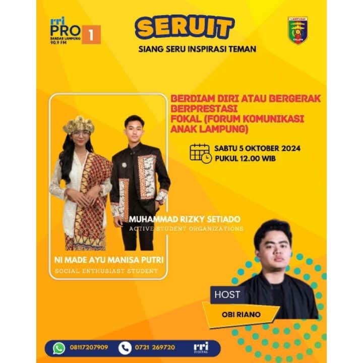 Karna itu, Forum Anak Daerah Lampung Tengah berkesempatan untuk Sharing di Acara SERIUT "SIANG SERU INSPIRASI TEMAN" dengan Tema "BERDIAM DIRI ATAU BERGERAK BERPRESTASI"
