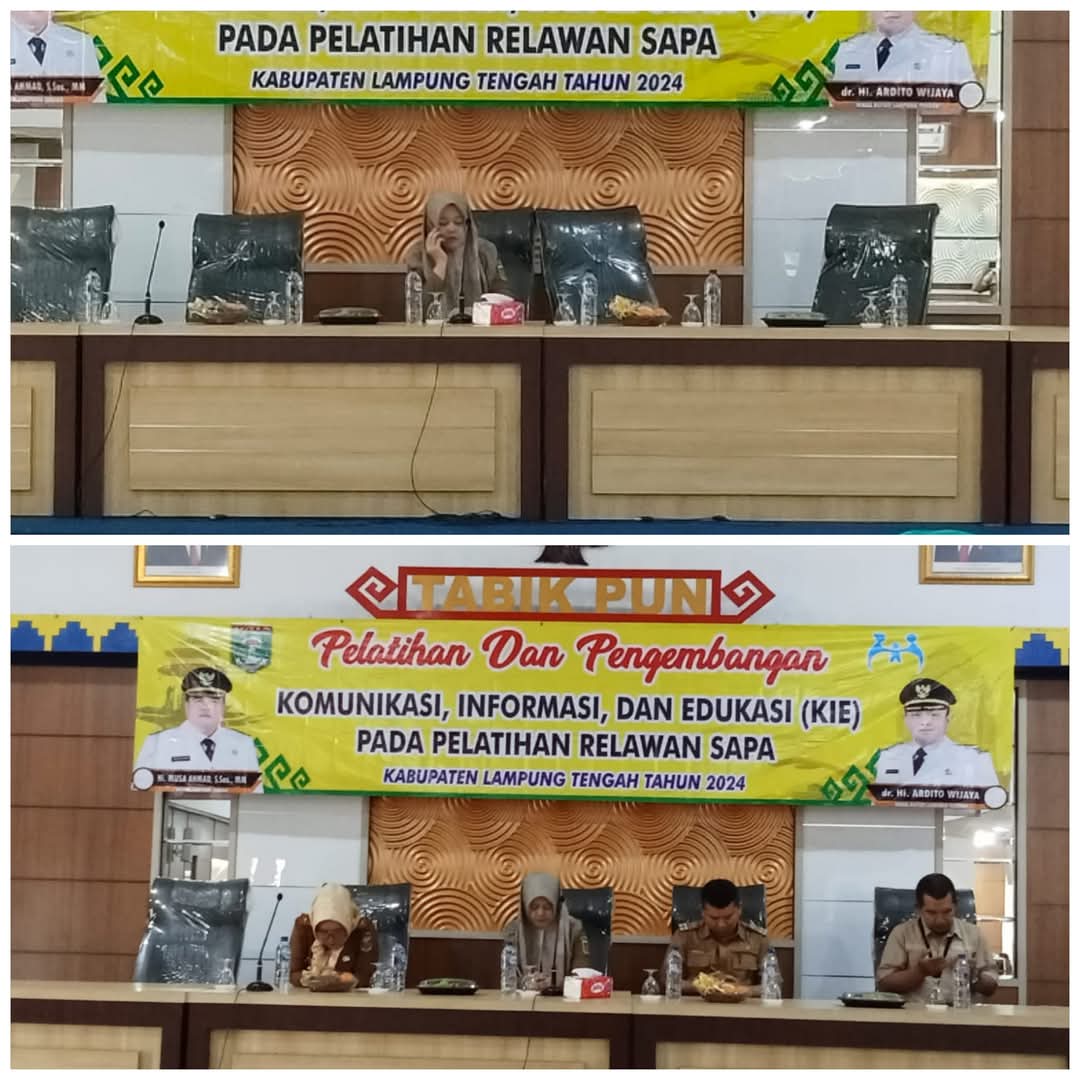 Dinas Pemberdayaan Perempuan dan Perlindungan Anak Kabupaten Lampung Tengah Melakukan Pelatihan dan Pengembangan Komunikasi,Informasi dan Edukasi (KIE) pada Pelatihan Relawan SAPA Kabupaten Lampung Tengah tahun 2024 di Aula siger Pemda Lantai IV Kabupaten Lampung Tengah