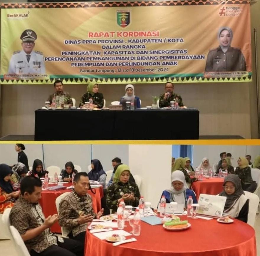 Dinas Pemberdayaan Perempuan dan Perlindungan Anak Kabupaten Lampung Tengah Mengikuti kegiatan Rapat Koordinasi dalam rangka Peningkatan Kapasitas dan Sinergisitas Perencanaan Pembangunan di Bidang Pemberdayaan Perempuan dan Perlindungan Anak di Hotel Novotel Bandar Lampung, 12 s.d 13 Desember 2024.